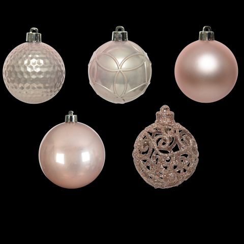 Karácsonyfadísz gömb szett 37 db-os púder rózsaszín, 6 cm-es díszek