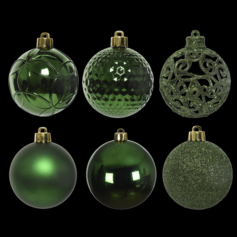 Karácsonyfadísz gömb szett 37 db-os smaragd zöld, 6 cm-es díszek