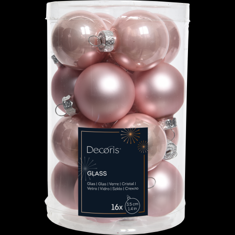 Karácsonyfadísz gömb szett üveg 16 db-os púder rózsaszín, 3,5 cm