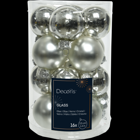 Karácsonyfadísz gömb szett üveg 16 db-os ezüst, 3,5cm-es