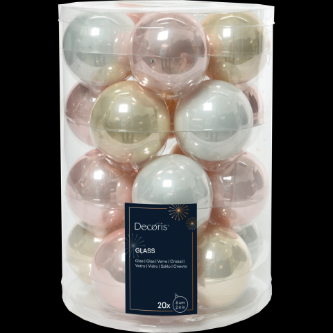 Karácsonyfadísz gömb szett üveg 20 db-os rózsaszín/fehér/arany, 6 cm-es díszek