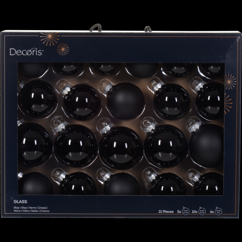 Karácsonyfadísz gömb szett üveg 21 db-os több méret fekete