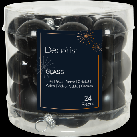 Karácsonyfadísz gömb szett üveg 24 db-os fekete, 2,5cm-es