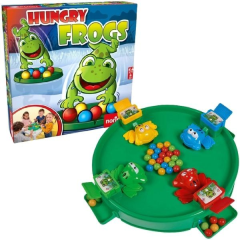 A klasszikus nagy kedvenc visszatért! Új kivitel, új csomagolás régi játékélmény! Négy béka ül a tóban. Nagyon éhesek mind. De melyik tud a legrövidebb idő alatt a legtöbb élelemhez jutni? Segíts neki! Aki a legtöbb eledelt szimbolizáló golyót szerzi meg, az nyeri a kört. Etesd meg a békádat gyorsan! A békák a fülük megnyomásával tátják a szájukat.