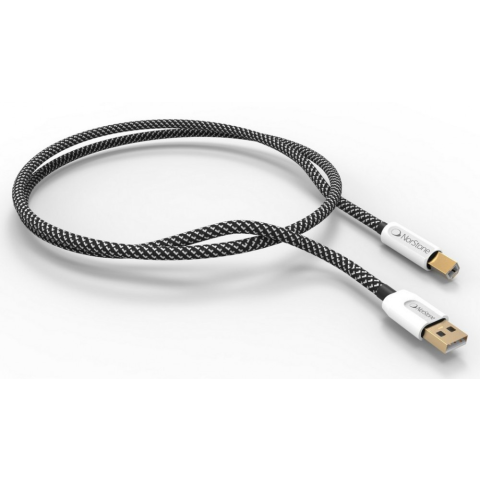 NorStone Jura USB - Prémium minőségű, ezüstözött USB összekötő kábel! 75 centiméteres USB-A - USB-B összekötő kábel, Digitális forrás és DAC összeköttetésére, Fonott PVC köpeny, Ezüst tartalom: 10%, 24 karátos aranyozott csatlakozók, Alumínium díszdoboz c