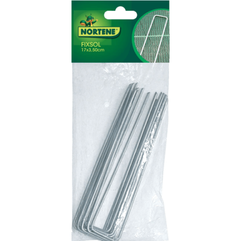 Fém leszúró fóliák, textíliák és vakondháló rögzítéséhez. Annak érdekében, hogy a földre helyezett háló a helyén maradjon, nagyon fontos rögzíteni azt. Ennek a legegyszerűbb módja a FIXSOL rögzítő kapocs, mely ha nem túl kemény a talaj, kézzel is könnyen alkalmazható. Műszaki adatok: Mérete: U alakban 17x3,5cm, anyaga: fém, 10 db/csomag.