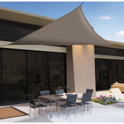 1 kép Nortene POLIÉSZTER napvitorla árnyékoló, háromszög alakú, barna, 3.6x3.6x3.6m