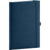 Jegyzetfüzet - A5 formátum, 192 lapos, vonalas papír, kemény kötés, műbőr borítóval, varrott gerinccel, gumiszalaggal, tárolózsebbel, kék kivitel