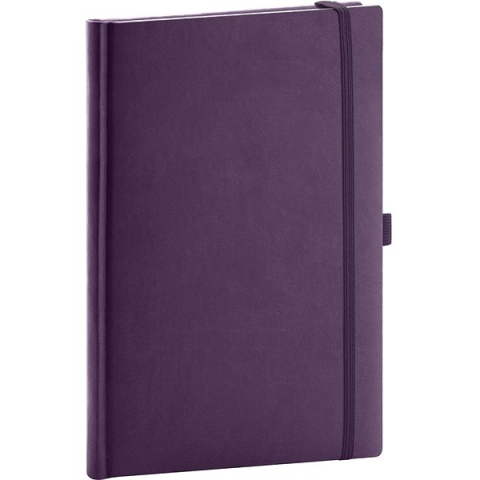 Jegyzetfüzet - A5 formátum, 192 lapos, vonalas papír, kemény kötés, műbőr borítóval, varrott gerinccel, gumiszalaggal, tárolózsebbel, lila kivitel