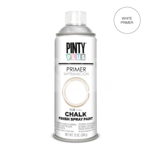Pinty Plus CHALK - Fehér alapozó spray 400 ml PP820 Kiváló minősőségű vizes bázisú krétafesték spray. Bármilyen felület dekorálására alkalmas, akár expandált polisztirolra is. A Pinty Plus krétafesték spray elsősorban bútorok és egyéb dekorációs elemek f