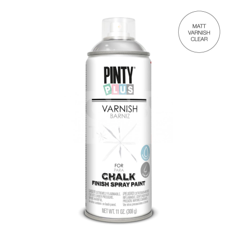 Pinty Plus CHALK - Matt lakk spray 400 ml PP821 Kiváló minősőségű vizes bázisú krétafesték spray. Bármilyen felület dekorálására alkalmas, akár expandált polisztirolra is. A Pinty Plus krétafesték spray elsősorban bútorok és egyéb dekorációs elemek festé
