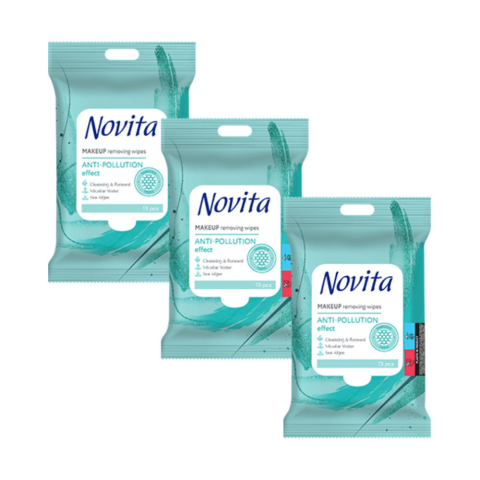 Novita Make Up sminklemosó 15db algakivonattal. Tisztává varázsolja a bőrt,teljeskörűen hidratál. Kellemes frissítő és hidratált érzést biztosít a bőr számára. NOVITA Make up sminklemosó nedves törlőkendő (3x15 db) A hatékony és kíméletes