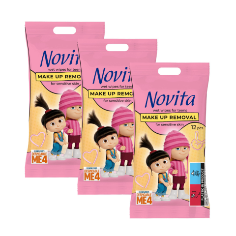 Novita Make Up sminklemosó 3x15db algakivonattal. Tisztává varázsolja a bőrt,teljeskörűen hidratál. Kellemes frissítő és hidratált érzést biztosít a bőr számára. Kifejezetten fiataloknak: A legfiatalabb sminkhasználóknak tervezve, akik imádják a Minions