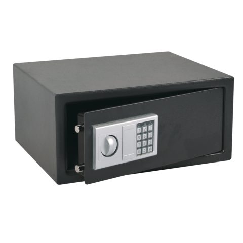 Elektromos bútorszéf - 3-8 jegyű digitális kódok - Külső méret: 430*350*200 mm - Belső méret: 420*390*190 mm - Lemezvastagság - ajtó/oldalak: 4/2 mm - Porszórt felület - 2 db vésznyitó kulcs - Fordítható retesz
