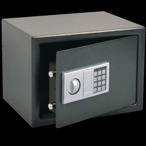 Elektromos bútorszéf - 3-8 jegyű digitális kódok - Külső méret: 350*250*250 mm - Belső méret: 340*190*240 mm - Lemezvastagság - ajtó/oldalak: 3/1,5 mm - Porszórt felület - 2 db vésznyitó kulcs - 4 db AA elem tartozék