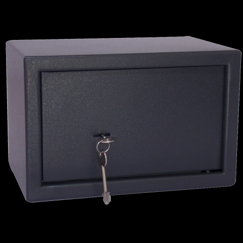 Kulcsos bútorszéf - Külső méret: 310*200*200 mm - Belső méret: 300*140*190 mm - Lemezvastagság - ajtó/oldalak: 3/1 mm - Porszórt felület - Fordítható retesz - 2 db kulcs