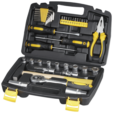 A Chrome Vanadium ötvözetnek köszönhetően a szerszámok tartósak, valamint ellenállóak oxidációval, korrózióval szemben.A koffer tartalma: 1 db kombinált fogó 6" 2 db csavarhúzó (PH2×100 mm, SL6×100 mm) 1 db bitbefogó szár 9 db 3/8" dugókulcs (8, 10, 11, 12, 13, 14, 15, 17, 19 mm) 1db 3/8" csuklós toldószár 1 db 3/8" hosszabbító (3") 1 db 3/8" racsnis kulcs 2 db 3/8" gyújtógyertya kulcs (16 mm, 21 mm) 1 db kalapács (200 g) 12 db 25 mm-es bitfej 8 db imbuszkulcs (1,5