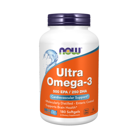 A NOW® Ultra Omega a leghatékonyabb omega-3-kiegészítő, 500 mg EPA -val és 250 mg DHA-val. Ezt a halolaj-koncentrátumot szigorú minőség-ellenőrzési szabványok szerint állítják elő. A tesztek alapján mentes a potenciálisan káros szennyeződésektől, mint például PCB-k, dioxinok, higany és más nehézfémek.