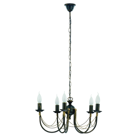 Antik bronz színű klasszikus csillár, E14 foglalattal, cserélhető fényforrással. A lámpa fényforrást nem tartalmaz...