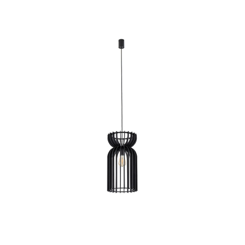 Skandináv stílusú függesztet lámpa a lengyel Nowodvorski-tól. Feketére festett búrája fából készült. Magasságnál a maximális belógást tüntettük fel, mely a vezeték rövidítésével csökkenthető. LED fényforrással működtethető, melyet a csomagolás nem tartalm..
