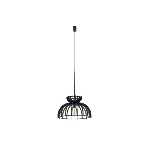 Skandináv stílusú függesztet lámpa a lengyel Nowodvorski-tól. Feketére festett búrája fából készült. Magasságnál a maximális belógást tüntettük fel, mely a vezeték rövidítésével csökkenthető. LED fényforrással működtethető, melyet a csomagolás nem tartalm..