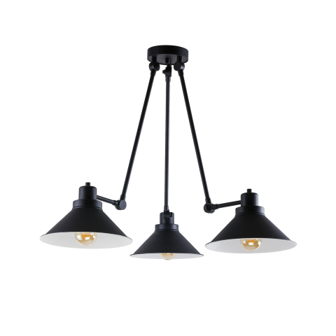 Loft stílusú függesztett lámpa, melynek búrája kívül fekete, belül fehér. Állítható karjának köszönhetően, oda irányíthatjuk a fényt, ahova szeretnénk. A csomagolás a fényforrást nem tartalmazza...
