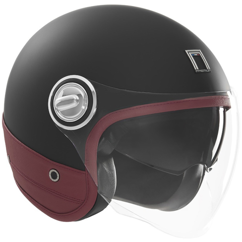Nox PREMIUM nyitott motorkerékpár sisak matt fekete-piros bőrrel