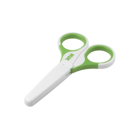 Gyermek egészséges olló fedéllel NUK. Biztonságos olló. Ideális a kisgyermekek számára. Az olló minőségi acél rozsdamentes anyagból készült. 0- hónapos kortól ajánlott.