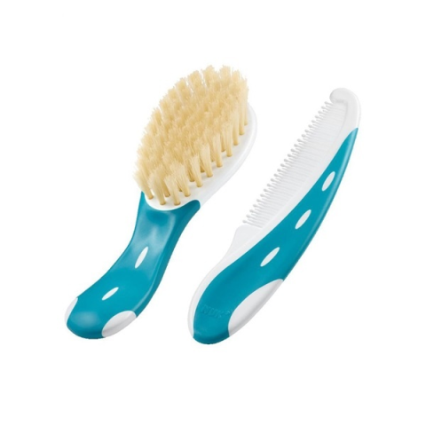 Nuk hajkefe és fésű. Hajkefe lágy, természetes szálakból fésűvel. A csúszásmentes markolat kényelmes tartást biztosít a fésűnek és a kefének is egyaránt. Újszülött kortól ajánlott.