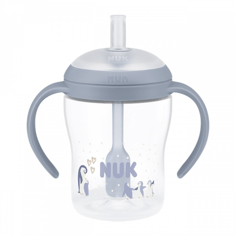 Gyerek kulacs - szívószálas, anyaga műanyag és polipropilén, oldalsó fogantyúk, szigetelt kupak, ajánlott 8 hónapos kortól, űrtartalma 150 ml, ergonomikus kialakítás, csöpögésmentes, kék kivitel Az ergonomikus, 150 ml űrtartalmú Nuk tanuló gyerek kulacs könnyebbé teszi gyermeked számára, hogy megtegye első lépéseit a palackból való önálló ivás felé. Könnyen fogható, mert ergonomikus formája é