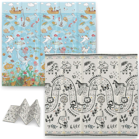 Nukido Összecsukható Játszószőnyeg: 2 az 1-ben szórakozás és kényelem a piciknek! 👶 Ez a 200x180x1 cm-es Nukido összecsukható habszivacs szőnyeg tökéletes választás a babák és kisgyermekek számára. Két oldalán különböző, vidám mintákkal (szafari és ó...