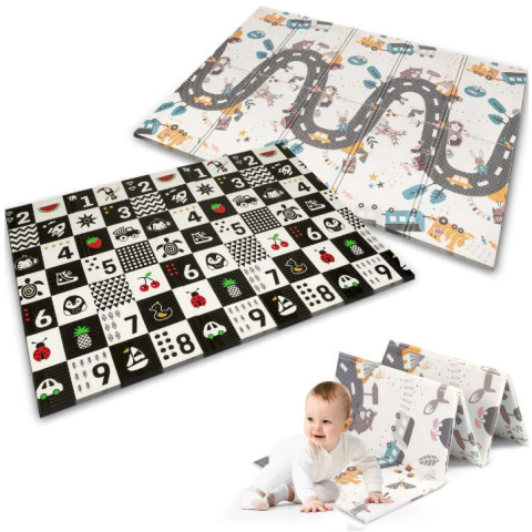 1 kép Nukido összehajtható kétoldalas Játszószőnyeg 150x200cm - Számok és Járművek #fekete-fehér