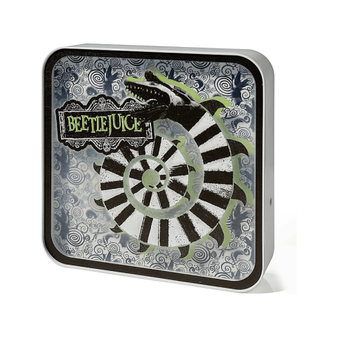 Itt a műsoridő! Vigyél egy csipetnyi természetfelettit a dekorációdba ezzel a hivatalos Beetlejuice lámpával. Ez az akrillámpa egy elülső rétegből áll, amelyen a Beetlejuice logó és az ikonikus homokféreg látható, mintás háttér előtt - a lámpa bekapcsolásakor megvilágosodik a háttér, és lágy, zöld fény tárul fel a homokféreg és a logó körül, fokozva a 3D-s megjelenést, miközben felderít bármilyen sötét szobát. Az eszköz felszerelhető a falra, az asz