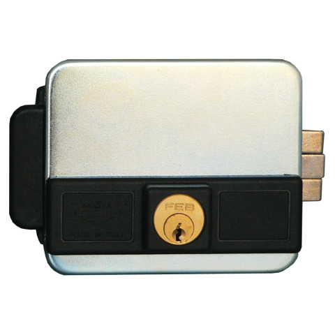 NUOVAFEB Elektromos zár, 8-12V/0,8A ac-dc impulzus, 50mm-es cilinder, memóriás, szakító erő: 350kg, nyitást blokkoló erő: 24kgEnglish, Italian: