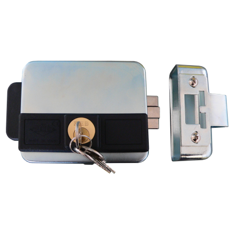 NUOVAFEB Elektromos zár, 8-12V/0,8A ac-dc impulzus, 60mm-es cilinder, memóriás, szakító erő: 350kg, nyitást blokkoló erő: 24kgEnglish, Italian: