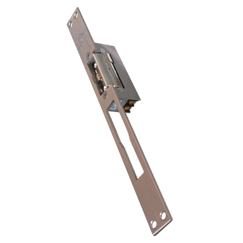 NUOVAFEB Elektromos zár ellenoldal, 6V/0,5A - 12V/0,8A ac-dc impulzus, állítható homlok-szélesség, memóriás, kiakasztható, hosszú, szakítóerő: 350kg, nyitást blokkoló erő: 24kg.- Univerzális (jobbos-balos, fordítható) homloklemez, a hosszú homloklap bevéső- vagy portálzárak kicsapodó zárnyelvének fogadását teszi lehetővé.English, Italian: