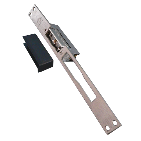 NUOVAFEB Elektromos zár ellenoldal, 6V/0,5A - 12V/1,3A ac-dc impulzus, állítható homlok-szélesség, memóriás, kiakasztható, hosszú, szakítóerő: 350kg, nyitást blokkoló erő: 24kgEnglish, Italian: