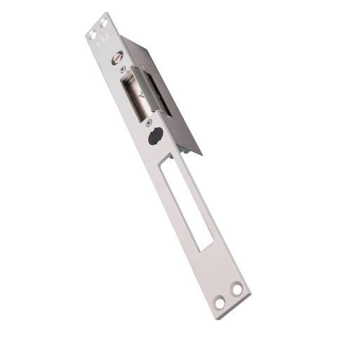 NUOVAFEB Elektromos zár ellenoldal, 8V/0,3A - 12V/0,5A impulzus, állítható homlokszélesség, memóriás, kiakasztható, hosszú, szakítóerő: 250kg, nyitást blokkoló erő: 24kg. - A hosszú homloklap bevéső - vagy portálzárak egyenes zárnyelvének fogadását teszi lehetővé.English, Italian: