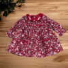 Apró virágos kord ruha Bőszabású, kerek nyakkivágású, galléros. Hátán 3 gombbal záródik, alsószoknyás. Hibátlan állapotú.