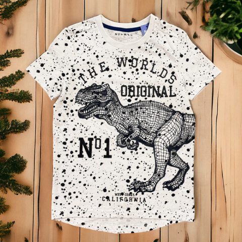 Elején nagy dinós mintával, kellemes viselet. mell:2x40cm hossz:58cm Új, címkés.