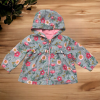 Virágos kiskabát Egyenes szabású, kapucnis, eleje cipzáros, polár béléses. Ideális őszi viselet. Hibátlan állapotú.