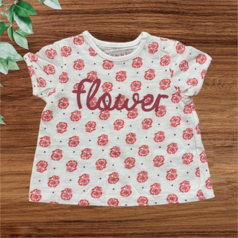 Virágos pamut felső Egyenes szabású, kerek nyakkivűgűsú, vállnál petentos. Kellemes pamut anyag. Hibátlan állapotú.