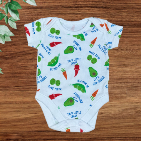 Zöldséges body Egyenes szabású, kerek nyakkivágású, ülepnél patentos. Hibátlan állapotú.