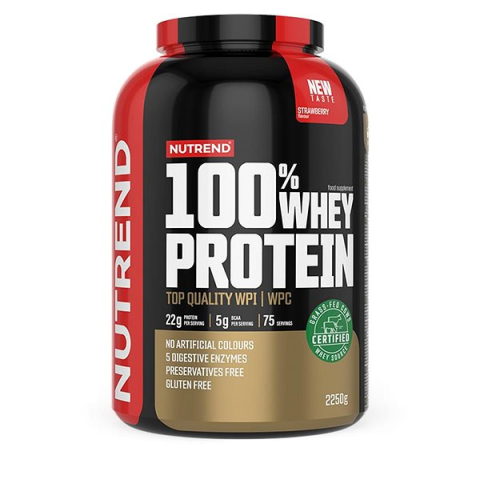 Protein - tejsavó, 76 % fehérjetartalom, 75 adag, eper ízű Aktív sportoló vagy, vagy csak szeretnéd kiegészíteni étrendedet minőségi fehérjékkel? Próbáld ki a Nutrend 100% Whey Protein tejsavó fehérjét. A csomag súlya 2250 gramm és 73% fehérjét tartalmaz. A f