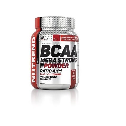 Aminosav - BCAA, por formájában, 500 g, cseresznye ízű A nagy intenzitással edző sportolóknak megfelelő fehérjebevitelre van szükségük, az aminosavak pedig minden fehérje építőkövei. A BCAA Mega Strong Powder 4 : 1 : 1 arányban tartalmazza az essz