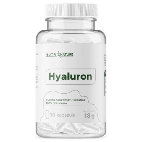 NUTRI NATURE – 500mg hyaluron – 30 kapszulaA hialuronsav a kollagénhez hasonlóan egy fehérje, amely igen magas koncentrációban található meg a szervezetünkben, hiszen a porcok és az ízületi folyadék alap alkotóeleme. A hialuronsav a kollagénhez hasonló