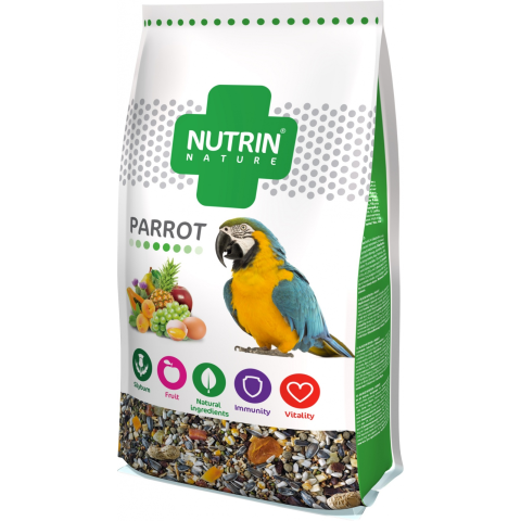 Papagájeledel Kiváló minőségű és ízletes papagáj eledel hozzáadott színezék, ízfokozó és aroma nélkül. Egyedi recept a NUTRIN márka szellemében Kiváló minőségű, változatos takarmány, amely teljes mértékben megfelel a papagájok táplálkozási igényeknek Kiválóan ízletes Nem tartalmaz ételfestéket, mesterséges ízfokozot és tartósítószereket Etetési útmutató: Szükség szerint adagolja. Levelekkel, friss gyümölcsökkel és zöldségekkel kiegé