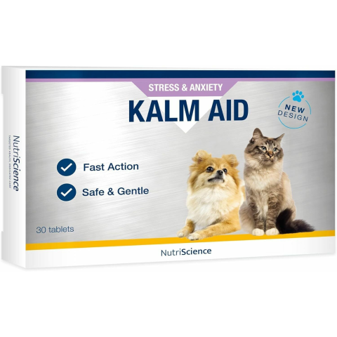 A NutriScience Kalm Aid tabletta ideges, szorongó kutyák és macskák számára készült stresszoldó készítmény. A NutriScience Kalm Aid elősegíti az állatok megnyugvását és enyhíti az ingerlékenységet. Kiválóan alkalmazható stresszhelyzetekben (pl. villámlástól, mennydörgéstől, utazástól való félelem), szeparációs szorongás (gazdától történő időleges elválás, új környezet, gyakori egyedüllét) vagy egyéb nem kívánatos viselkedések esetén.Táplál