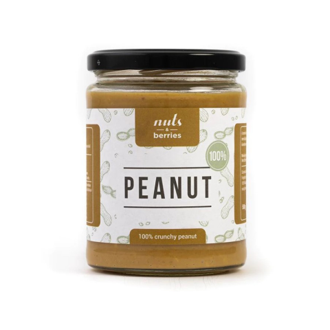 Nuts&berries 100% földimogyorókrém crunchy 500 g Nem véletlenül szeretik az amerikaiak annyira a mogyoróvajat! Jellegzetes finom íze mellett a fehérjetartalma is igen magas, ami akár a 25%-ot is elérheti, viszonylag alacsony szénhidrát tartalom mellett