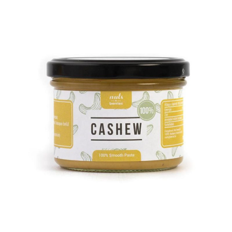 Nuts&berries 100% kesukrém 200 g Kesudió krém a földimogyoróvajjal szinte teljesen mértékben megegyezően készül, így a tökéletes pörkölést követő speciális elkészítésnek köszönhetően egy édeskés ízvilágú, rendkívül krémes, ugyanakkor sűrűbb állagú krém